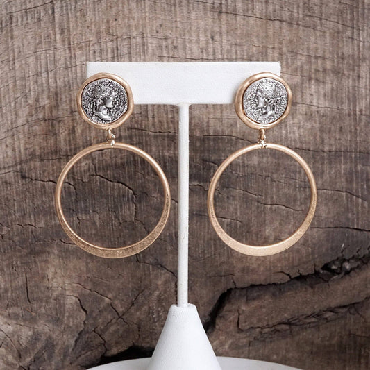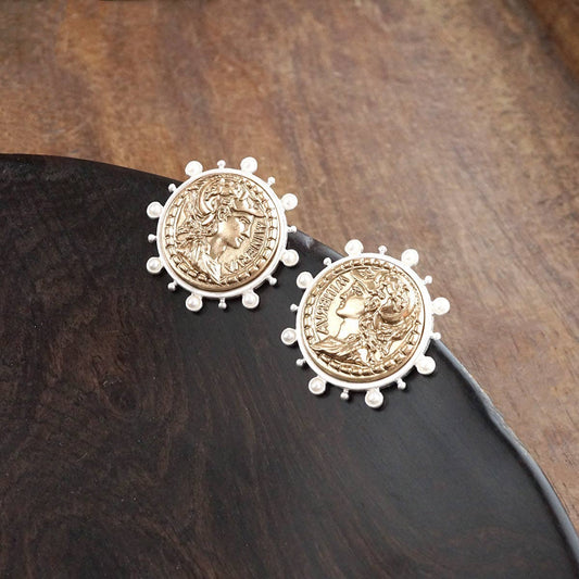Boho Coin Statement Stud Earrings β Silver and Gold Tone