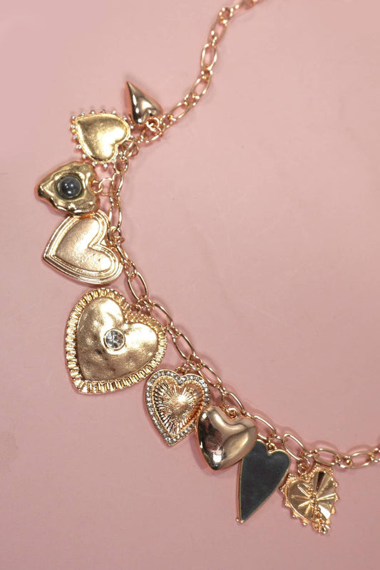 CHARM NECKLACE-MULTI BOLD HEART CHARM NECKLACE