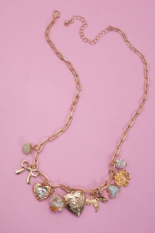 CHARM NECKLACE-BOW LOVE FLOWER HEART