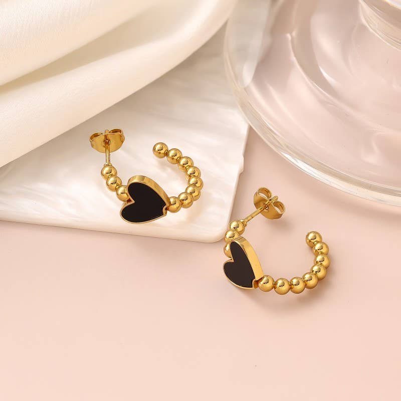 18K Stainless Steel Tarnish Free Waterproof Epoxy Heart on bubble round Huggie Hoop Earrings, these earrings feature adorable huggie hoop clover earrings. Designs meticulously crafted from high-quality stainless steel with a radiant 18K gold finish. Their tarnish-free, hypoallergenic, and fade-resistant.