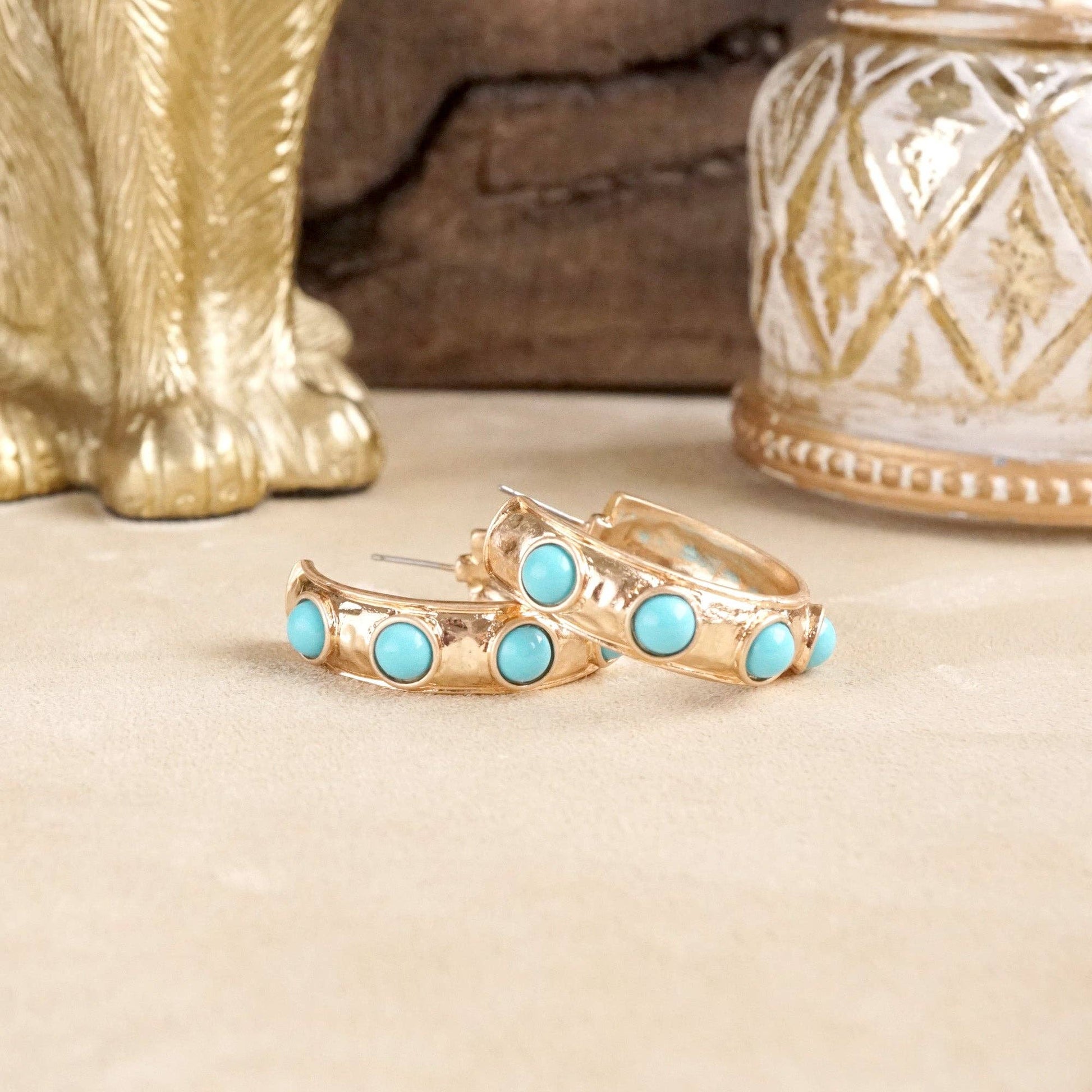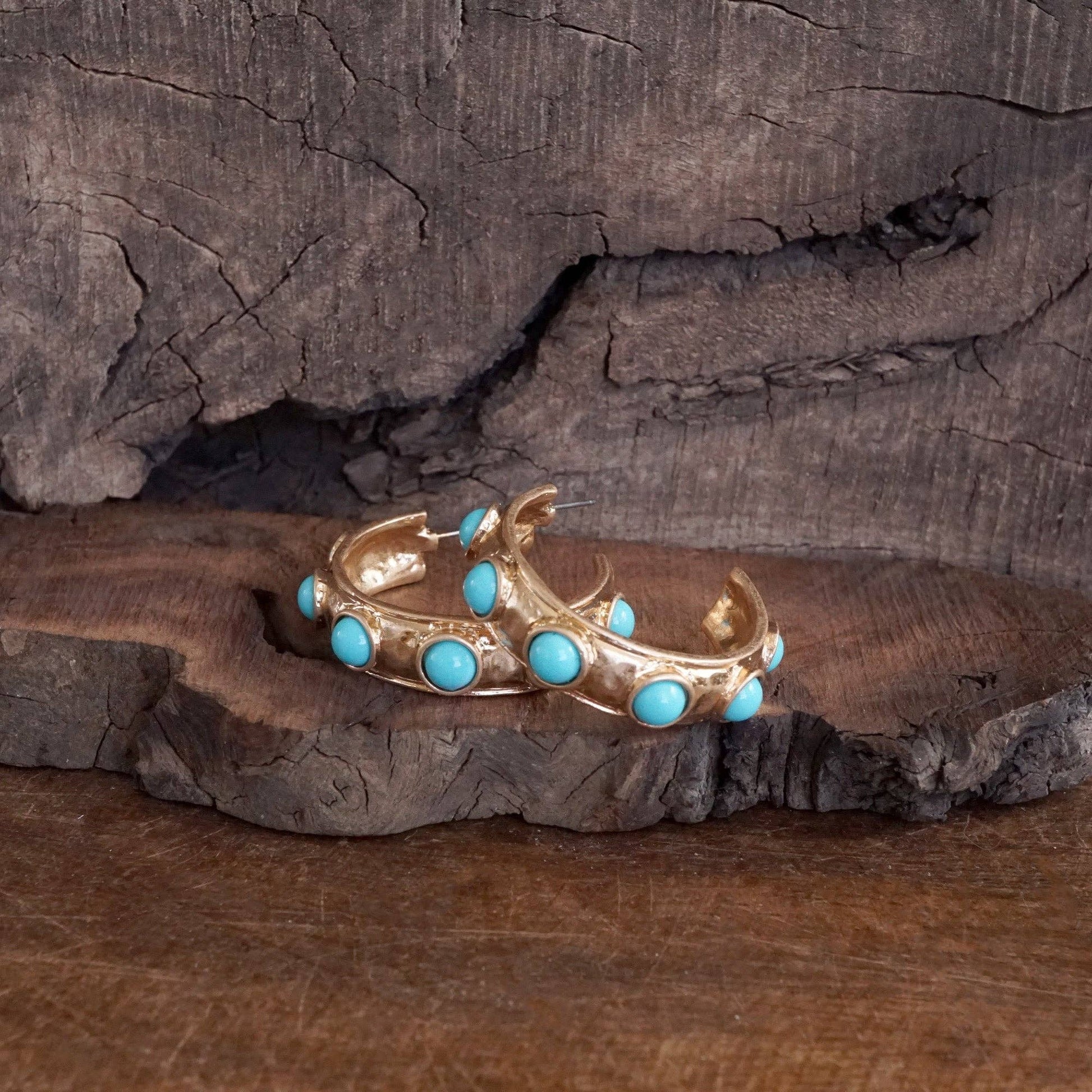 A bold take on a classic hoop. These Jeweled Bubble Earrings feature an organic gold-tone finish with vibrant acrylic cabochons, adding texture, color, and charm to any look. Designed to pair perfectly with our matching Bubble Bangles or stand strong on their own.